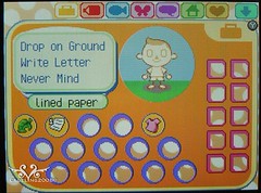 拿到信紙之後,打開口袋,看到信紙的圖就用觸控筆點一下,會出現Write Letter的選項,點選後就可以選擇寄送對象並開始寫信: