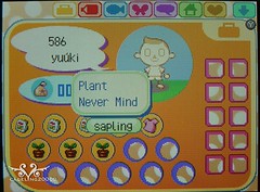 打開口袋,就可以看到剛剛狸吉給的一堆樹苗還有花種,點選圖示就可以按下Plant種植: