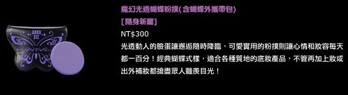 最後的【魔幻光透蝴蝶粉撲(含蝴蝶外攜帶包) 】(有粉底液就會想要買塊海綿~~~XD雖然說魔幻光透瓷娃娃保濕粉底液用手就已經很好推勻了~~~)