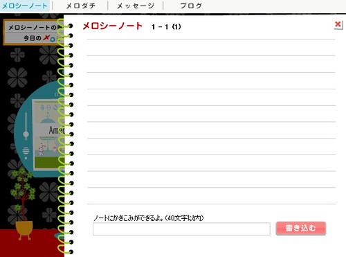 --- ノートを開く:為打開新功能的留言本,察看最近來訪的朋友的留言,同樣的去朋友家玩的話,也可以看看她家的留言本,留言之餘說不定還會遇到認識的人的留言喔!