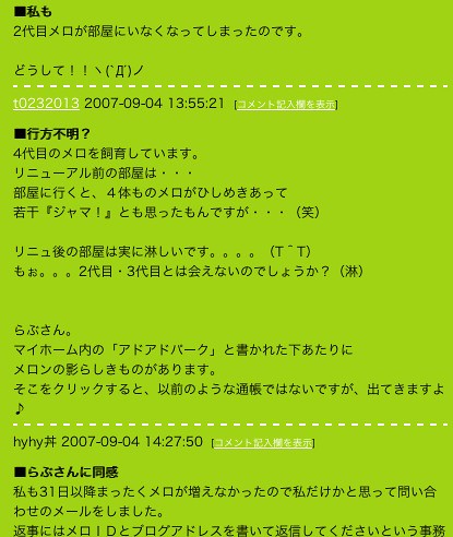 最後希望短時間內水滴公園不要再更新啦.......把系統用穩定一點比較好><,現在不知道是系統設定的問題或是怎樣,家中一次最多只出現2隻水滴.....(目前我到第三世代,不是只出現第二世代就是只和第一世代一起出現,都不會三隻一起出現了......),營運事物局東的這篇文章(【ブログ更新分のメロンが付与されなかった件について】)下面也有很多人反應,不過目前為止還沒有看到正式的回應........