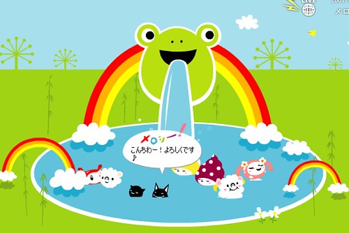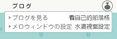最上面是察看自己的部落格,最多可以看到自己過去所發表的九篇文章。下面則是水滴視窗【メロウィンドウ】(mero window)的設定,分成面版與草原道具的設定,最後是部落格的RSS登錄: