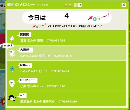 p.s. 系統也會提示,メロシー的主要功能就是希望水滴朋友之間能常常互相交流,所以メロシー的累積要在朋友家中才會達成,所以不要傻傻的在自己家裡一直按一直按,這樣是不是有用的唷!