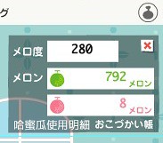 7. 最後不要遺忘了最右邊的小小圖示,按下去之後會顯示メロ度、メロン的數目以及最下面白色字樣的メロン使用記錄: