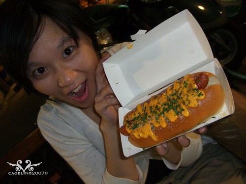 【招牌起司脆薯】真的是超好吃的!其實薯條很普通,但是那個醬啊!天啊,超濃超好吃!(但吃多一定會肥死........),熱狗本體很脆,咬起來很有口感,【招牌辣肉醬熱狗】有一點辣辣的感覺,不過【超濃起司熱狗】就真的是超濃起司(我後來還剩一口吃不完拿回家吃,連媽媽都聞到起司的超濃味道),附餐的飲料就很普通,我們點的是檸檬紅茶。