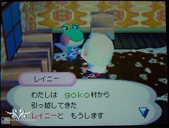 然後前幾天開始玩日版了,送完化石到minitai家後就開日版的玩,從森友家回來後馬上又搬進了一隻小青蛙レイニー~