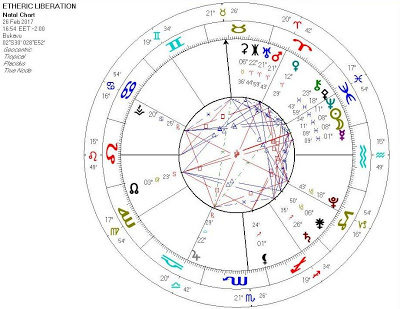 私たちの瞑想を表す占星図には、火星/天王星、小惑星ヴェスタ、木星及び冥王星がカーディナル・グランド・スクエアを形作っています。これは年が明けてから私たちが感じていた惑星の緊張状態を表す兆候です。これが完全に解消されるのは4月中旬になります。魚座の8度にある太陽と月の合はエネルギを集中させる巨大レンズとなり、惑星の緊張状態を解消させるきっかけになっています。小惑星ジュノー、準惑星セレス、月の交点が形作るグランド・トラインは、日食から見た黄道帯の反対側の乙女座8度にある位置を指す巨大な矢印のようものです。その位置に、善良なドラゴンファミリーの故郷である竜座のトゥバンがあります。私たちの瞑想の中で、彼らは極めて重要な役割の一つを担うでしょう。