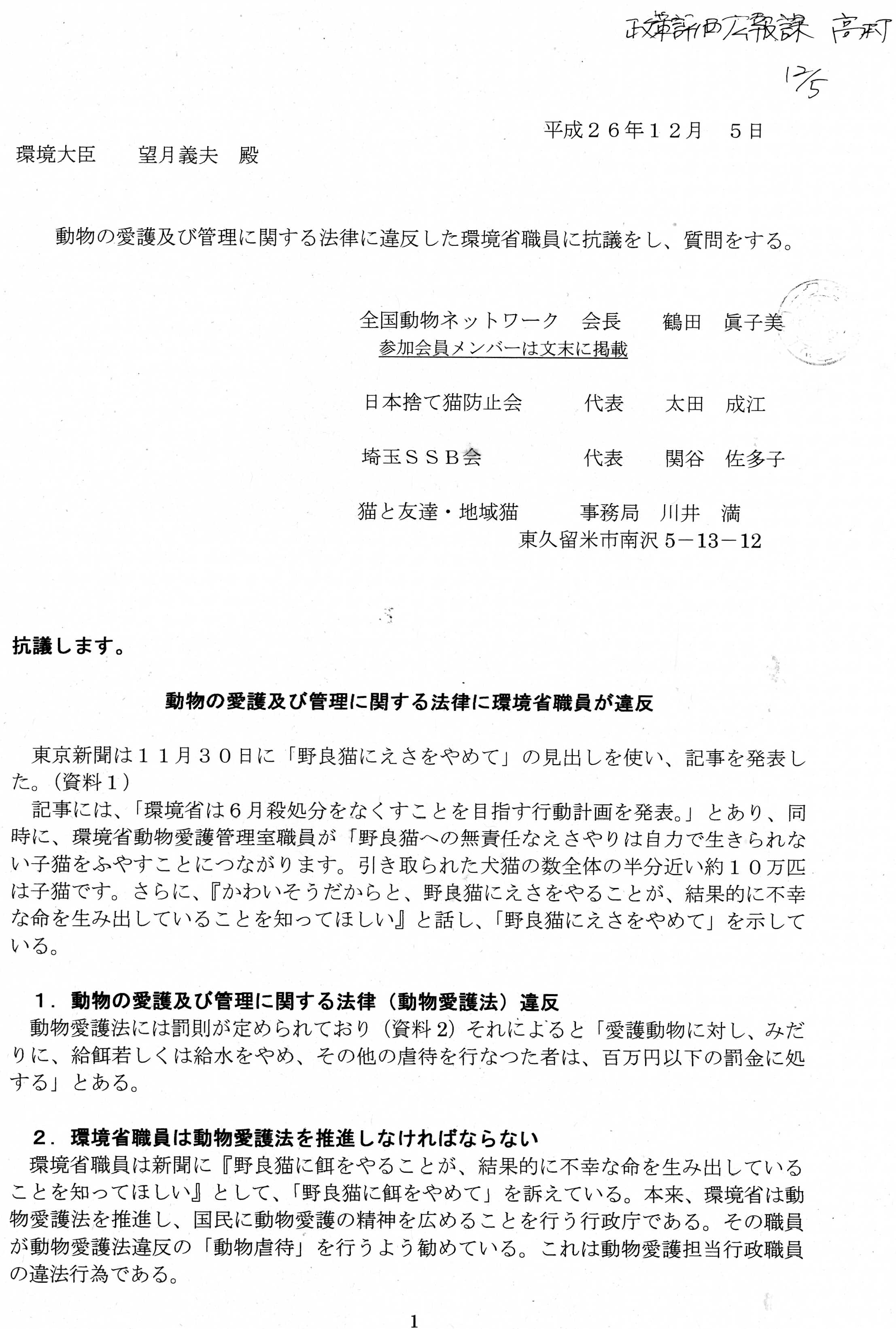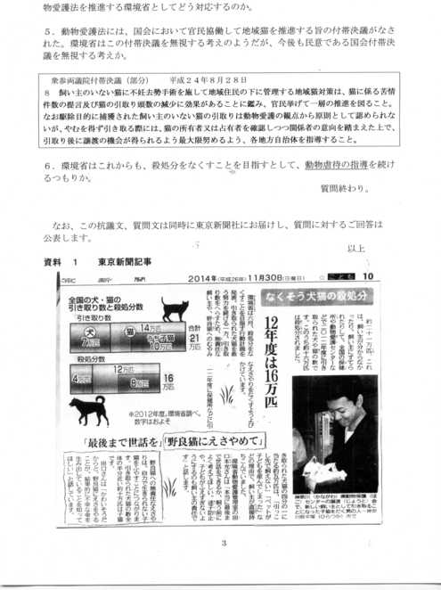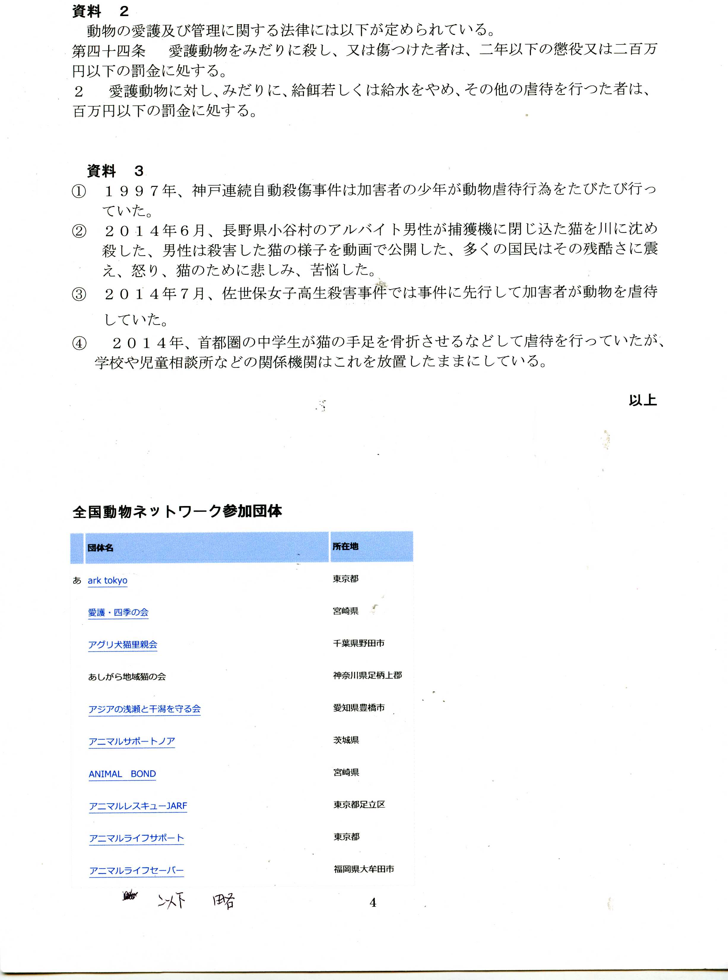 意見書は環境省動物愛護管理室としては受け取って頂けなかったため、