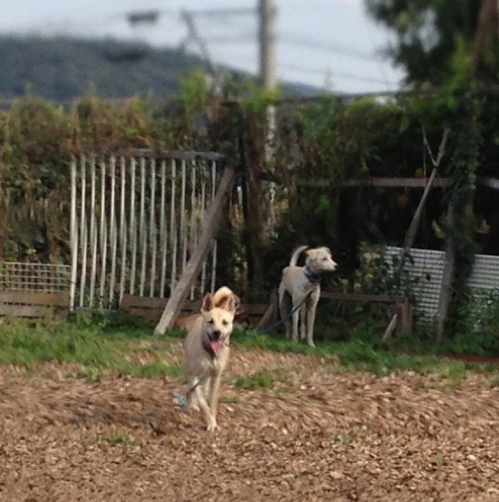 午後にシェルターに到着すると、常総ワンコが、ドックランにいました。