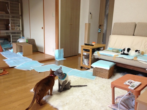 ケージとソファをつなぐ道がマルちゃんロードなのです。