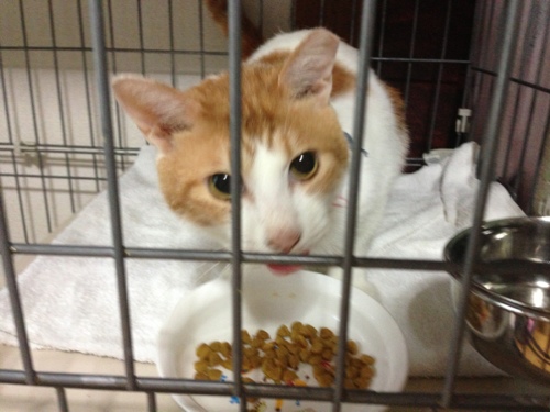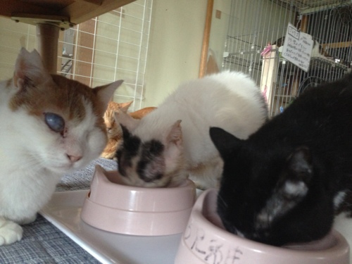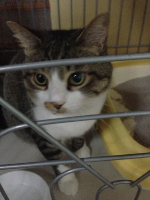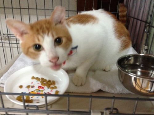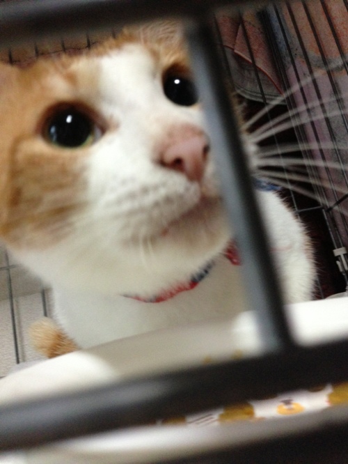 ポプラ部屋のレンちゃんは、アレルギーの療法食なので、ご飯の時だけケージの中です。