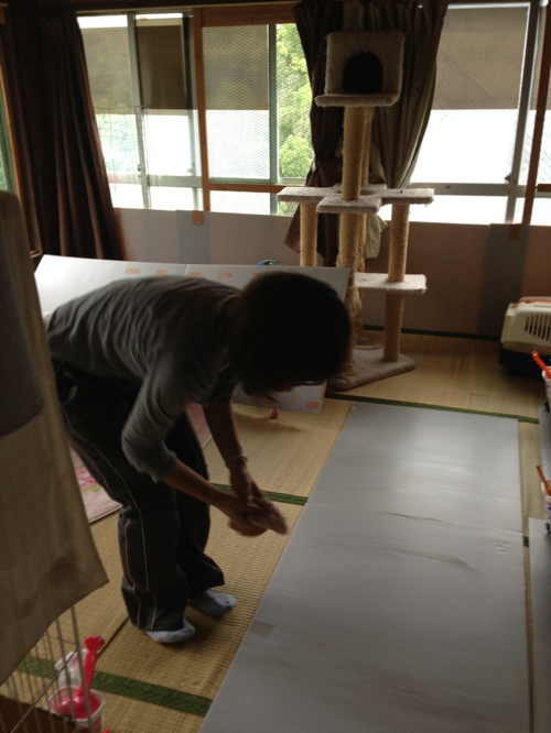 ご飯が終わったら、猫部屋のお掃除です。
