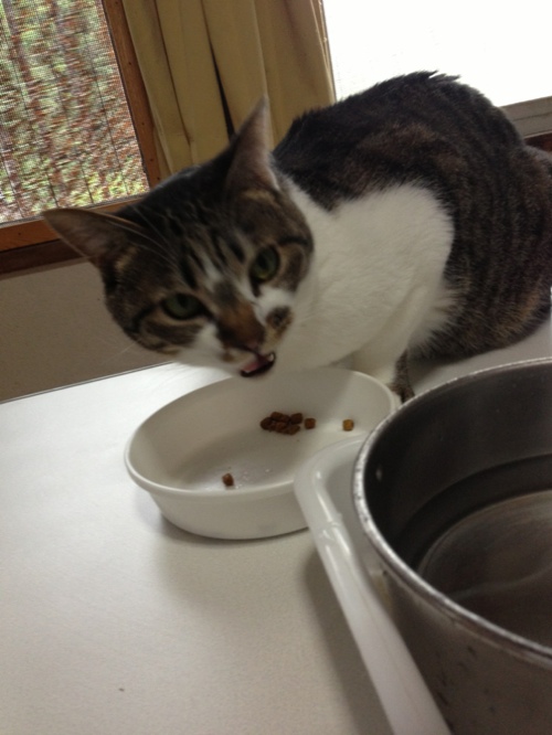 私は、お腹ペコペコの猫達の朝ごはんに取りかかりました。