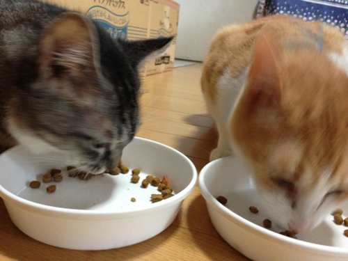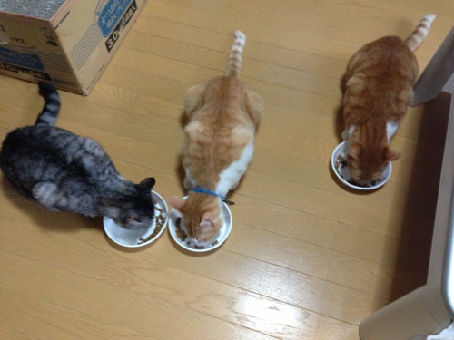 食べることに夢中な猫ちゃん達。