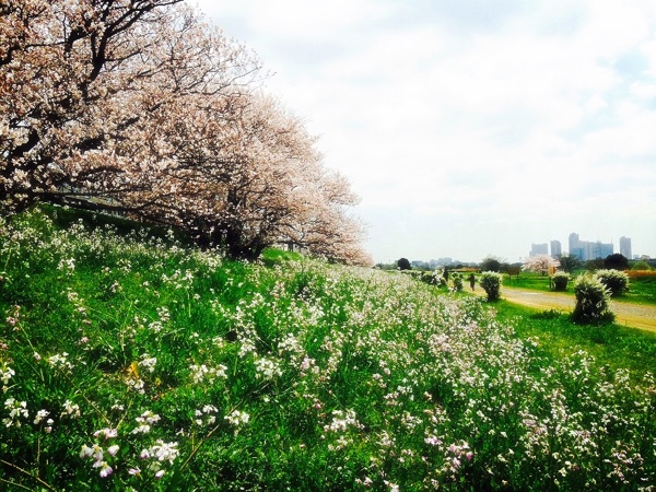 マルルとのんびり、多摩川でお花見してきました~[emoji:v-291]