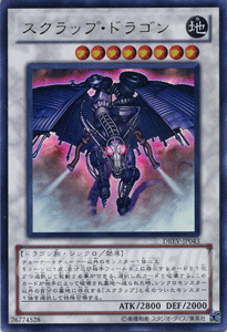 スクラップ・ドラゴン【ウルトラ】価格確認★遊戯王5D's「DUELIST REVOLUTION(デュエリスト・レヴォリューション)」収録【シンクロ・効果モンスター】ウルトラレア■星8/地属性/ドラゴン族/攻2800/守2000■チューナー+チューナー以外のモンスター1体以上■1ターンに1度、自分及び相手フィールド上に存在するカードを1枚ずつ選択して発動する事ができる。選択したカードを破壊する。このカードが相手によって破壊され墓地へ送られた時、シンクロモンスター以外の自分の墓地に存在する「スクラップ」と名のついたモンスター1体を選択して特殊召喚する。【ID:76774528】本日の息子の戦利品(笑)