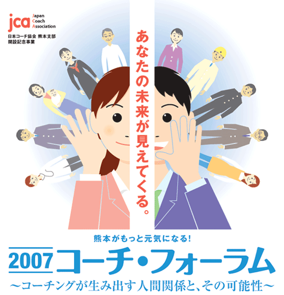 2007コーチ・フォーラム11月18日に熊本で行われます。10月からコーチング講座に通う私としては、とっても興味のあるフォーラムです。皆さんも参加してみませんか?9月中の申し込みなら、3000円で受講できるようです。***2007コーチ・フォーラム日時 2007年11月18日(日) 開場:9時30分 開演:10時~17時45分会場 【主会場】熊本市民会館 【副会場】国際交流会館定員 300名(参加費:5,000円[早割3,000円9月30日まで])
