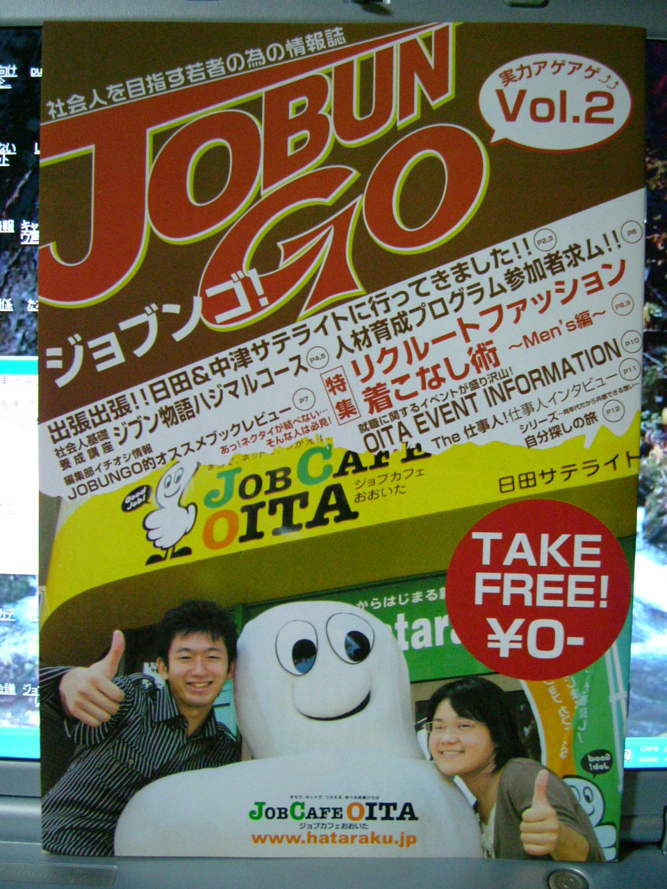 今月の上旬に第2号が発刊したジョブカフェおおいたのフリーペーパー「JOBUNGO」が、早くも第3号発刊に向けて動き出しました!打ち合わせを行って参りましたが、今回はAPUの学生さん、1回生1名、2回生3名という布陣で参ります。
