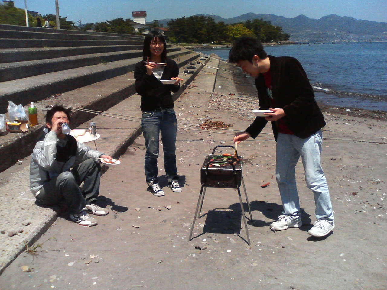 というわけで、4月29日のマジ会を頑張ってくれた学生幹事のみんなと、市内上人が浜にて、バーベキューをして参りました。