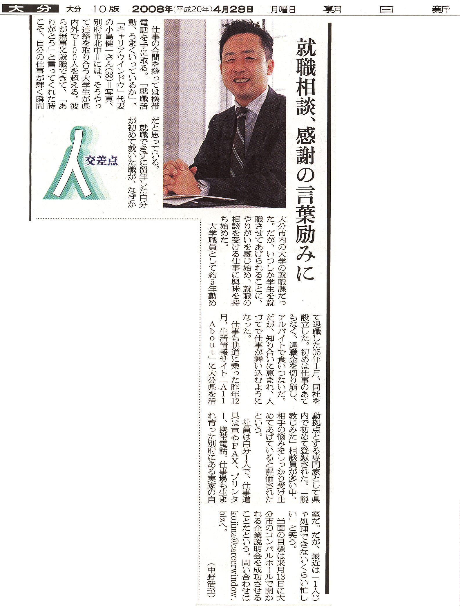 朝日新聞に掲載されました | キャリアカウンセラー小島健一の「日日草枕」