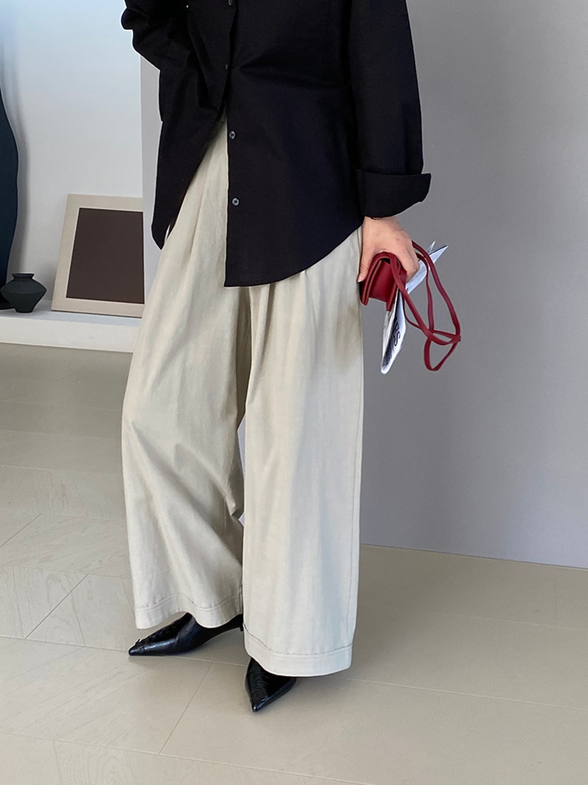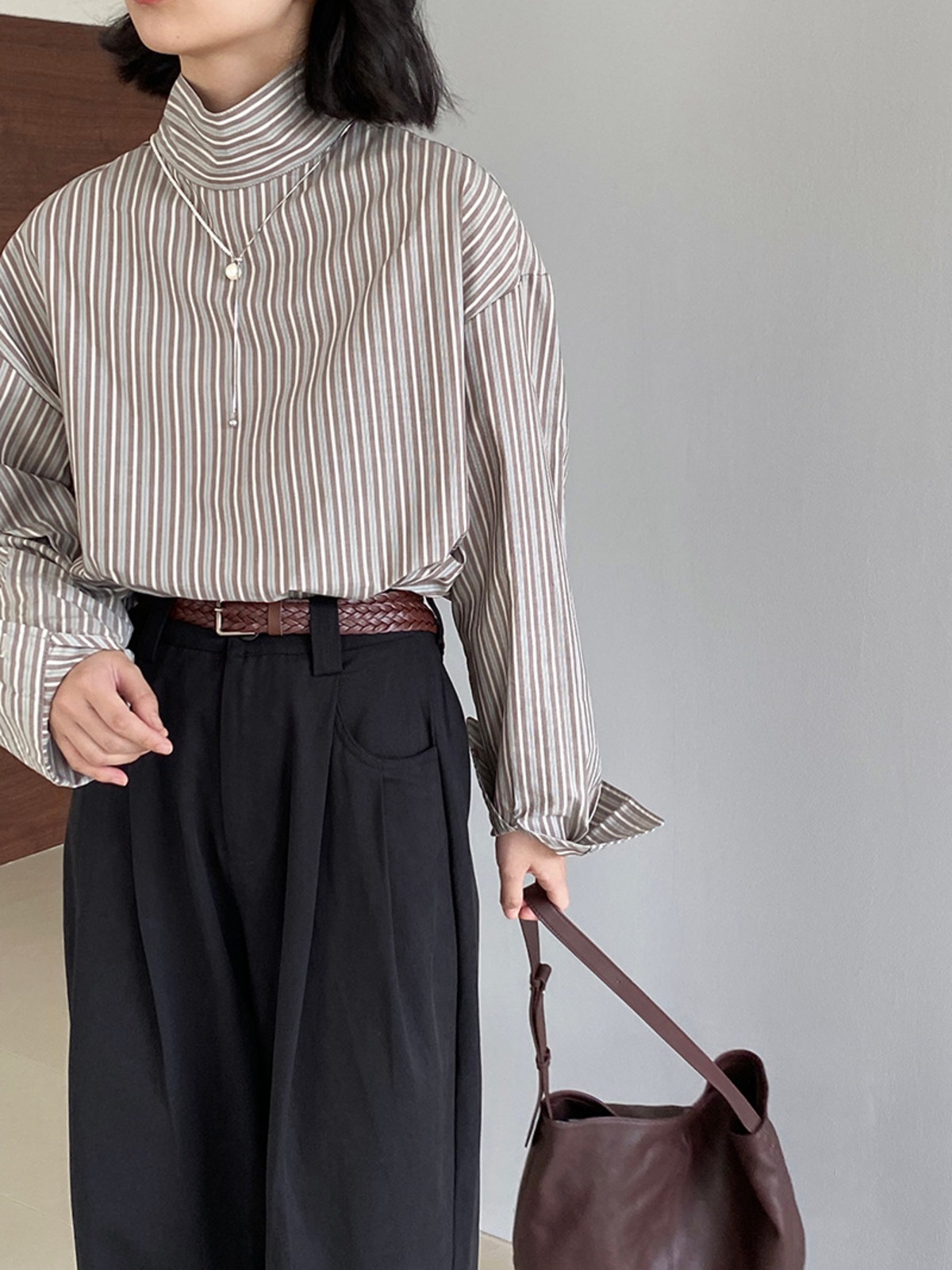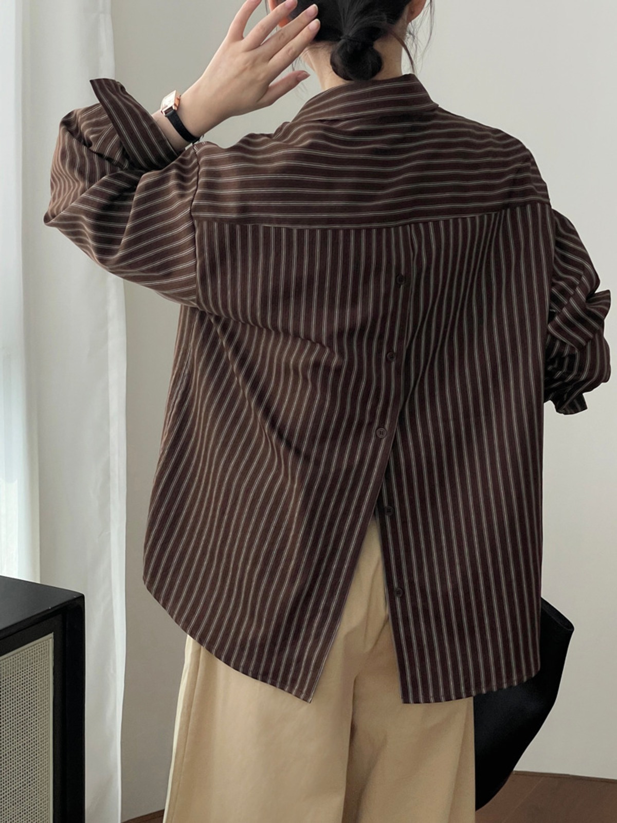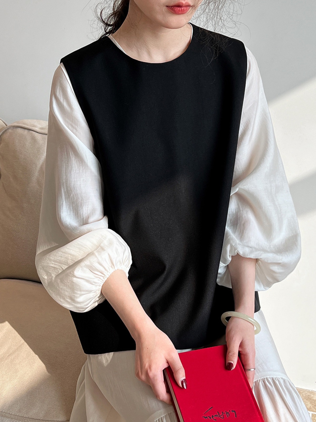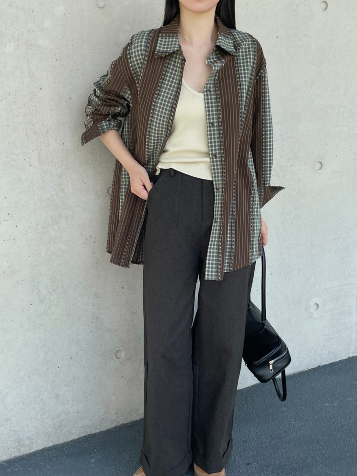 まずは、シンプルながらも万能なフロントボタンブラウスです。「え?黒のシャツ?シンプルすぎじゃない?」って思ったそこのあなた!実はこのブラウス、いざ着てみると何にでも合うんですよ。オシャレ初心者の旦那さんでも「なんか今日いい感じ?」って褒めてくれるかも?!何と合わせても、あの「あ、この人センスあるな」って見えるから不思議。