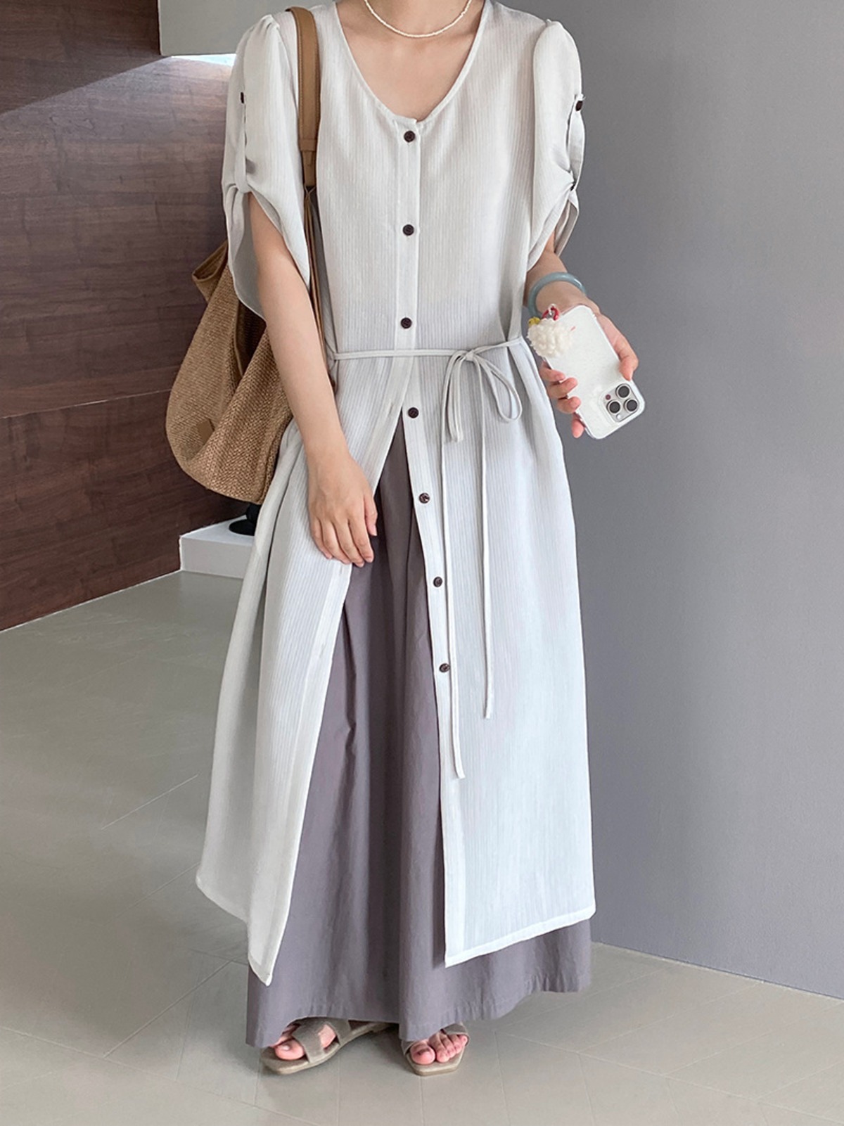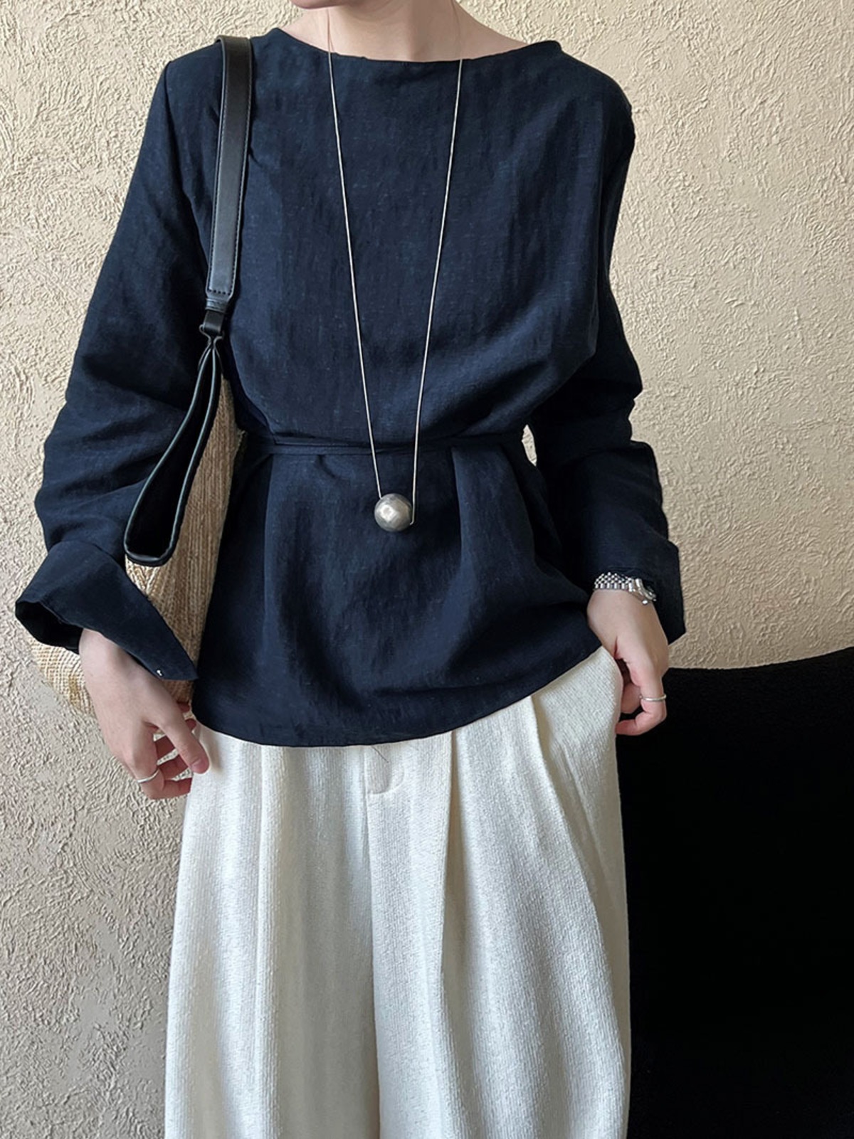 次は、このブラウス。ウエストにリボン付きで、ちょっとウエストをキュッと締めれば「お、お腹周りが…?!」って錯覚するほどの魔法アイテム。リボンをほどいてゆったり着れば、お腹いっぱい食べた後も安心ですw。普段はカジュアルに、ちょっと特別な時にはフォーマルにも使える万能さ。まさに、ママたちの味方です。
