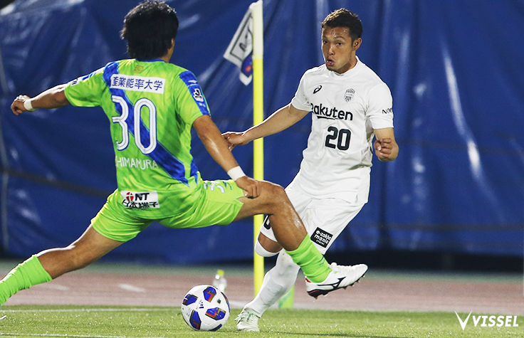 18分にはヴィッセルの左サイドに侵入した高山薫がクロスを上げ、これに中央で端戸仁が頭で合わせた。