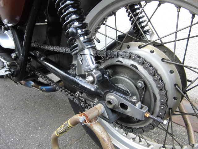 これをしつこく繰り返して、これまではウエスにチェーンルブを散布して塗りこんでいましたが(直接吹きかけると、余分を十分拭き取っても次回走行にはオイルが飛んでしまう)、MOTULはスプレー時にはシャバシャバなので直接噴霧します。