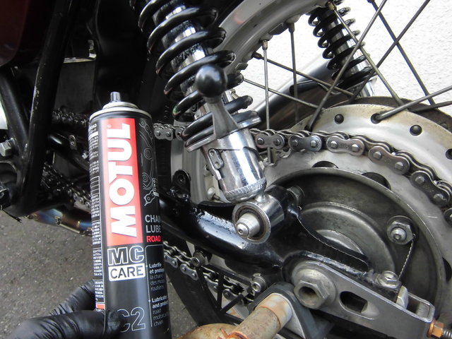 ようやく無くなったので、使いたかったMOTUL チェーンルブ ロードに変更です。