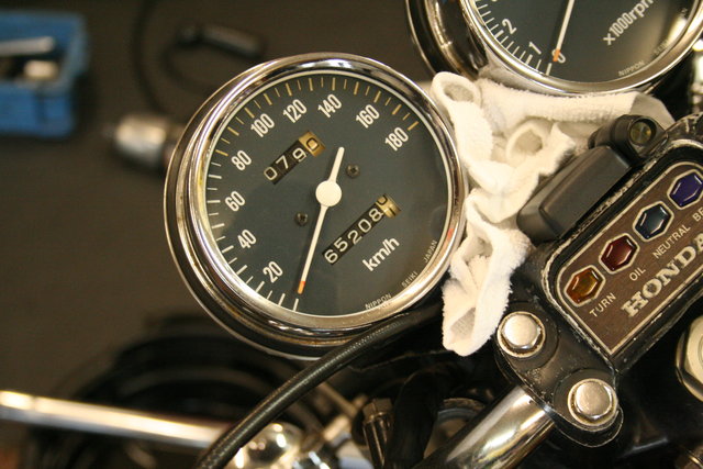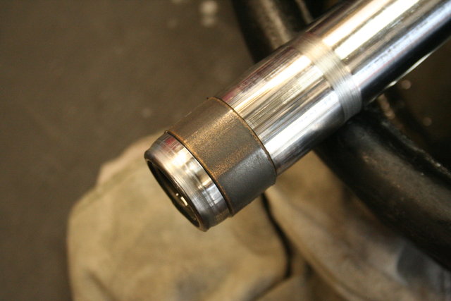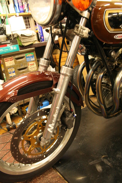 私のCB550のフロントフォークはノーマルのインナーチューブにCB-FBのスライドメタルを取り付けできるよう加工して、CB-FBのアウターチューブに組みつけてあるのですが、その仕様に改造したのは97年5月、走行22800km時。