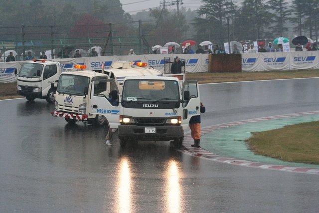 ライダー、ピットクルー、チーム、観客、そして、ツクバのスタッフ、多くの人々の思いも届かず、11月に入りずっと晴天続きだったのに何故この日が・・・・・