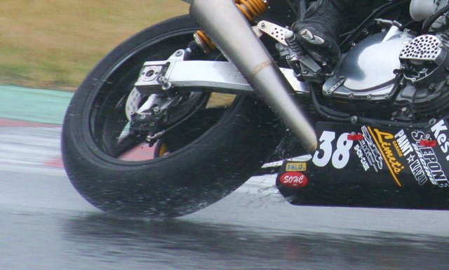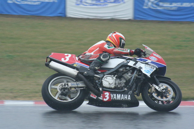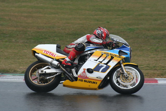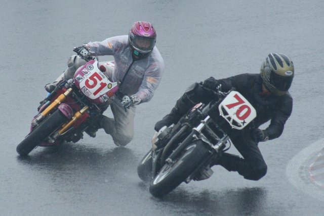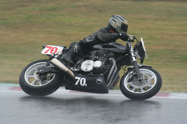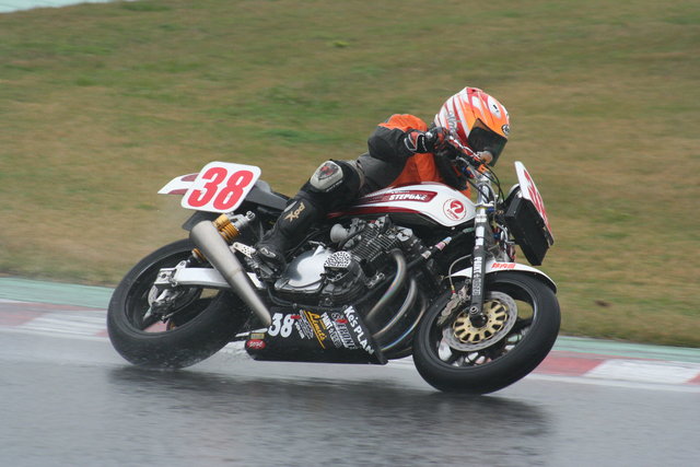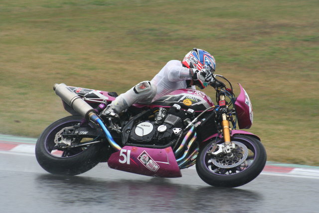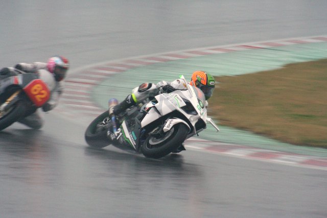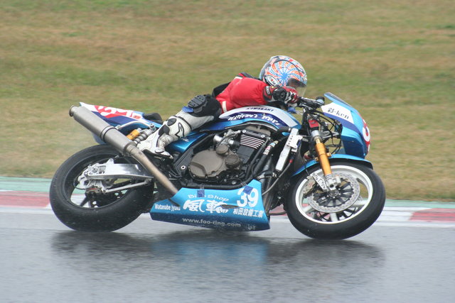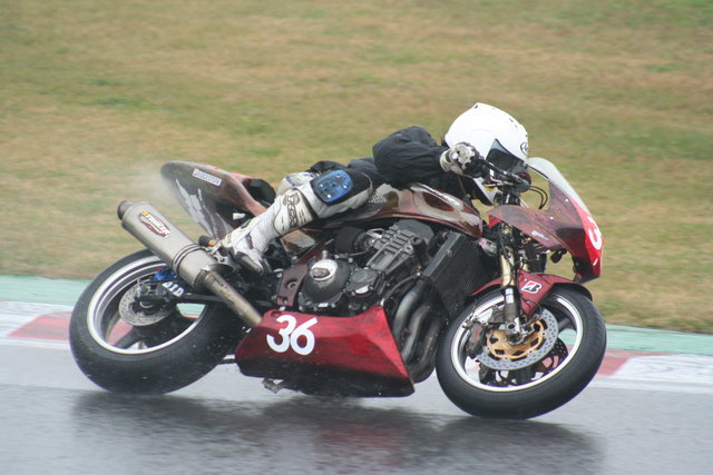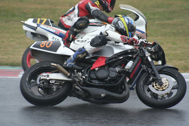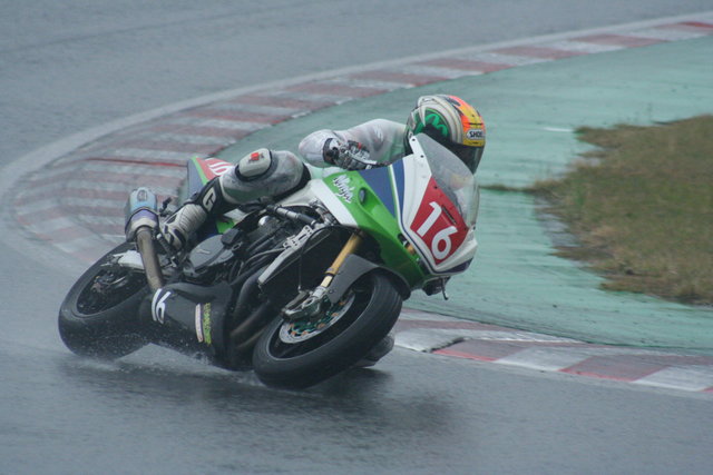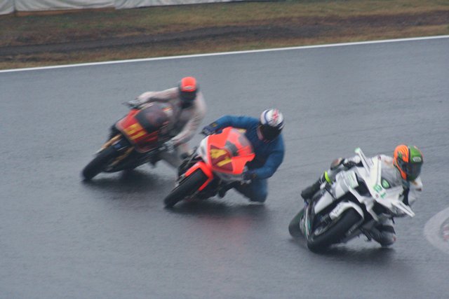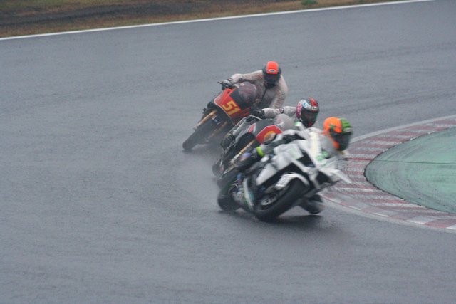 1000ccで100馬力以上、しかも決して軽くない(笑)マシンで雨の中走る、いや、競争するわけで、