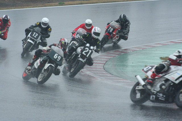 現在はRZV、RG-ガンマといった2スト4気筒500ccにFZ、ナナハン忍者、のトップ争いからVF750、空冷GPZ、CBX750、ゼファー750、まで多様なマシンが競い合っています。