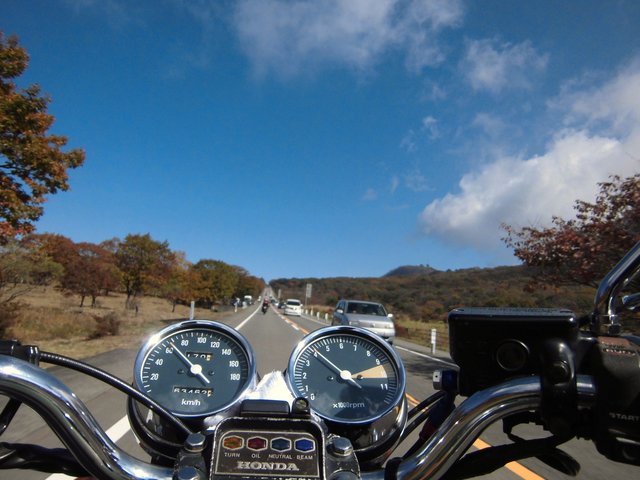 車に閊えていたので本当にゆっくりw山を登ったので木々の切れ間から見える山肌の紅葉が本当に綺麗でした。