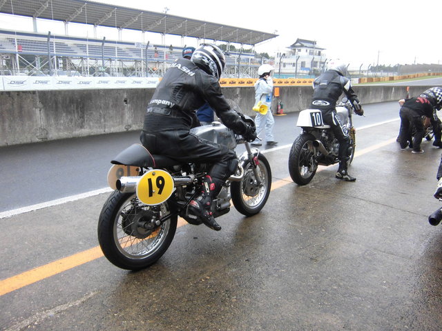 当日は結構トラブルが多く、ウェイティング中にオイル処理(メインストレート後半から1ヘア立ち上がりまで)が入り、ライダーも不安げ。