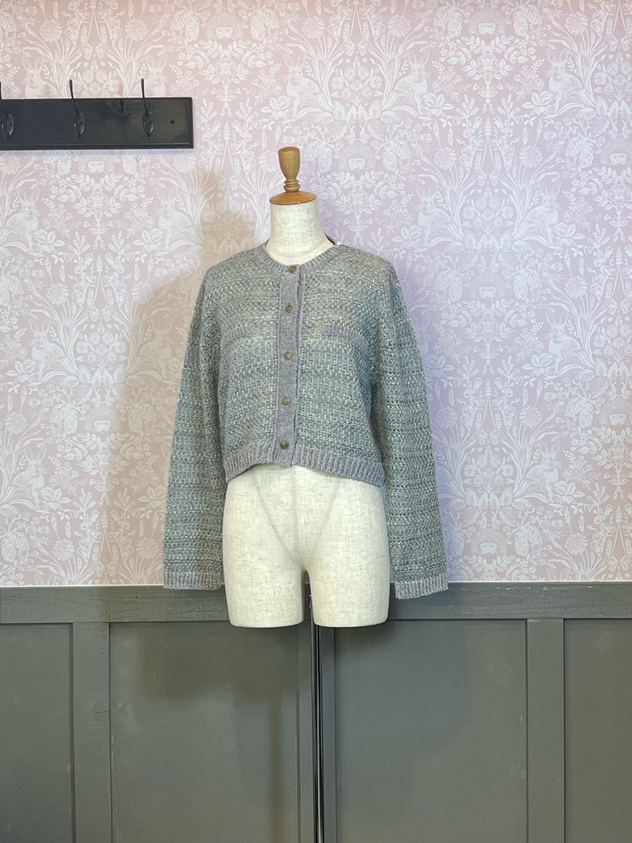 クールなグレーも、ニット素材の優しい風合いと淡い色調によって、穏やかで女性らしい雰囲気を演出します。