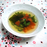素材:オクラ2本、トマト 1/2個、わかめ少々