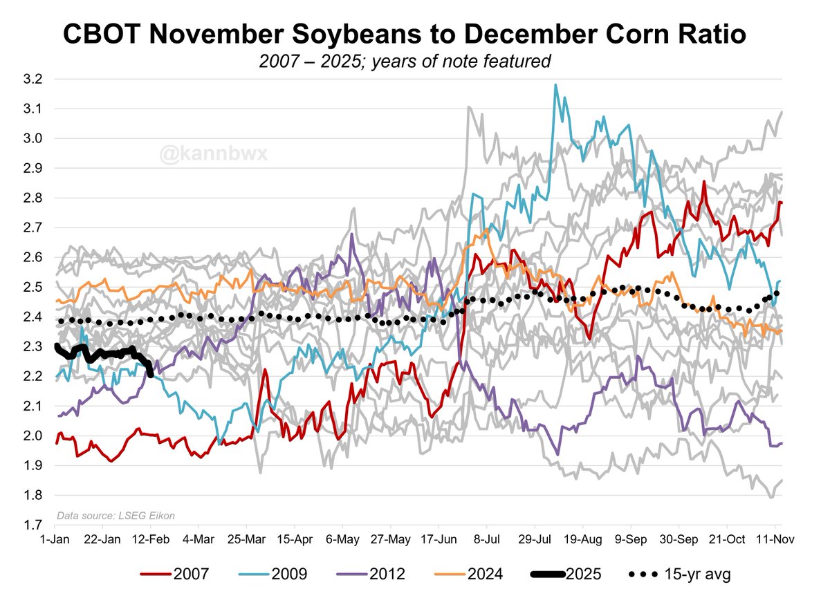 大豆/とうもろこしの比価が24年比較で0.3程低いのでとうもろこしに面積が流れる予想ですが、相場はどう反応するでしょう。