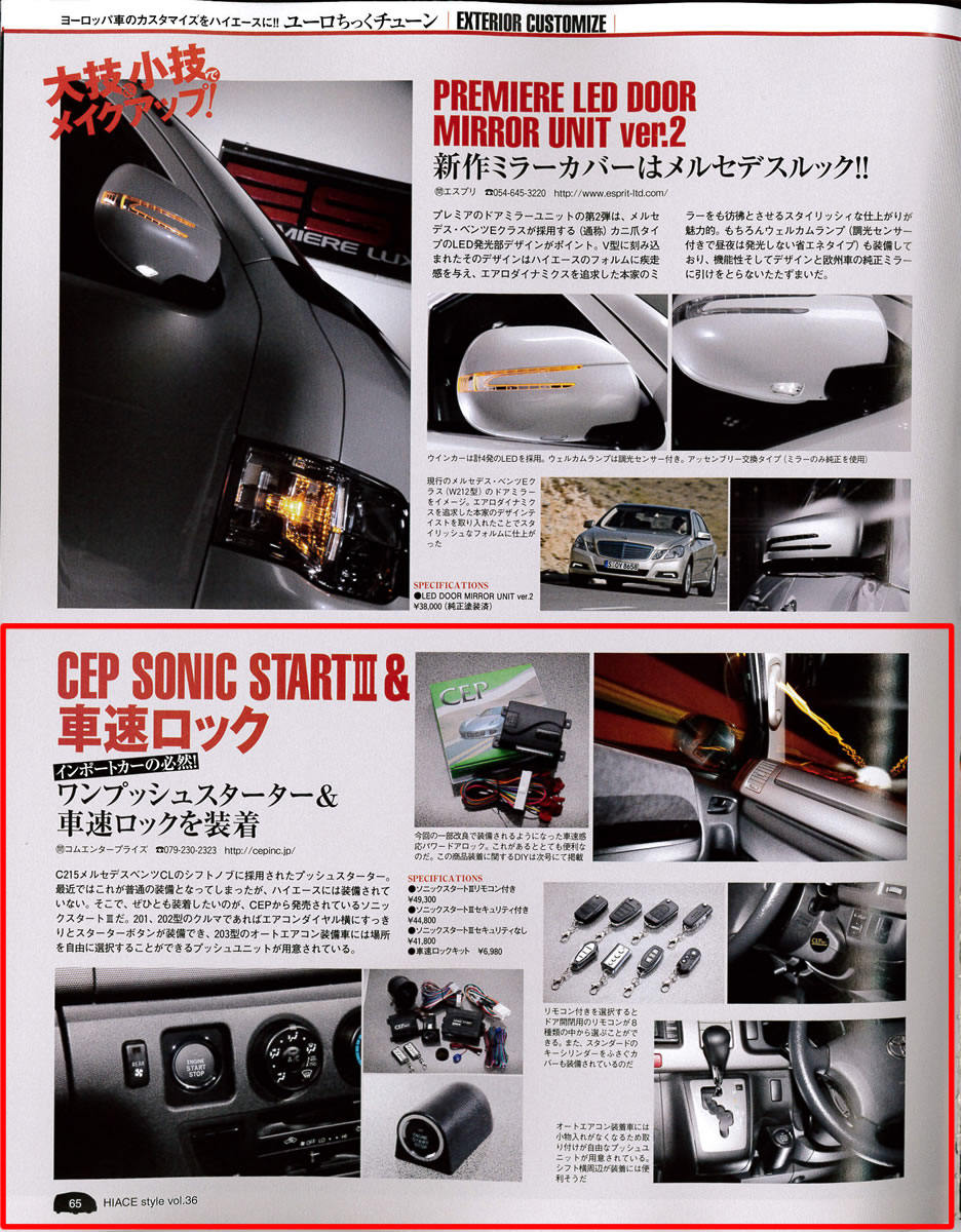 ハイエース専用のプッシュスタート、車速ロックの製品内容等が詳しく掲載されてます!!