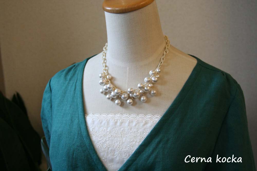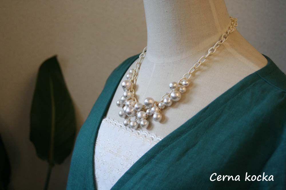 ジャラジャラついたコットンパールも軽いので、見た目よりかなり軽いネックレスですね。
