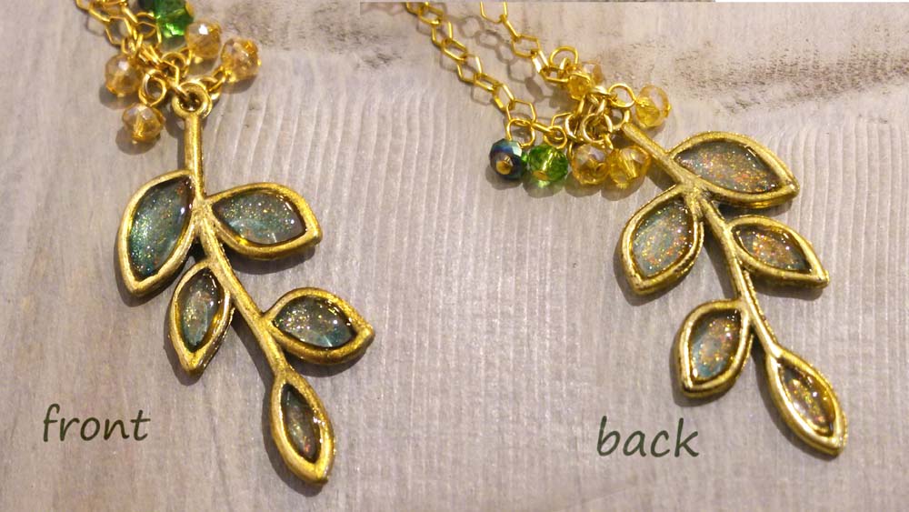 裏は角度によって、オレンジの中にグリーンの色がキラッと光る、オパールのような
