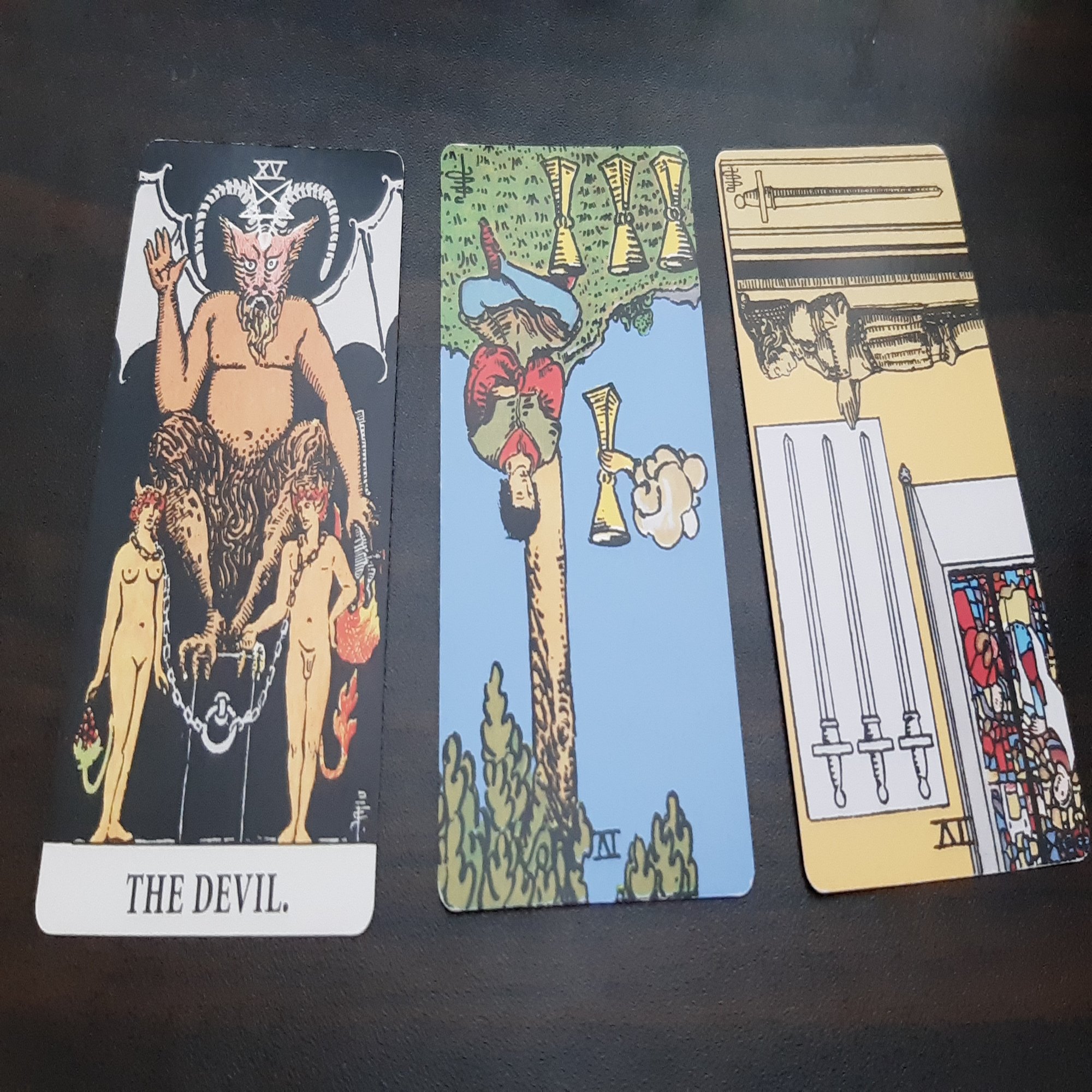 デビルの正位置とカップのⅣというマンネリのカードとソードの7の休息・思考停止のカードが出ました。残念ながら厳しそうです。。