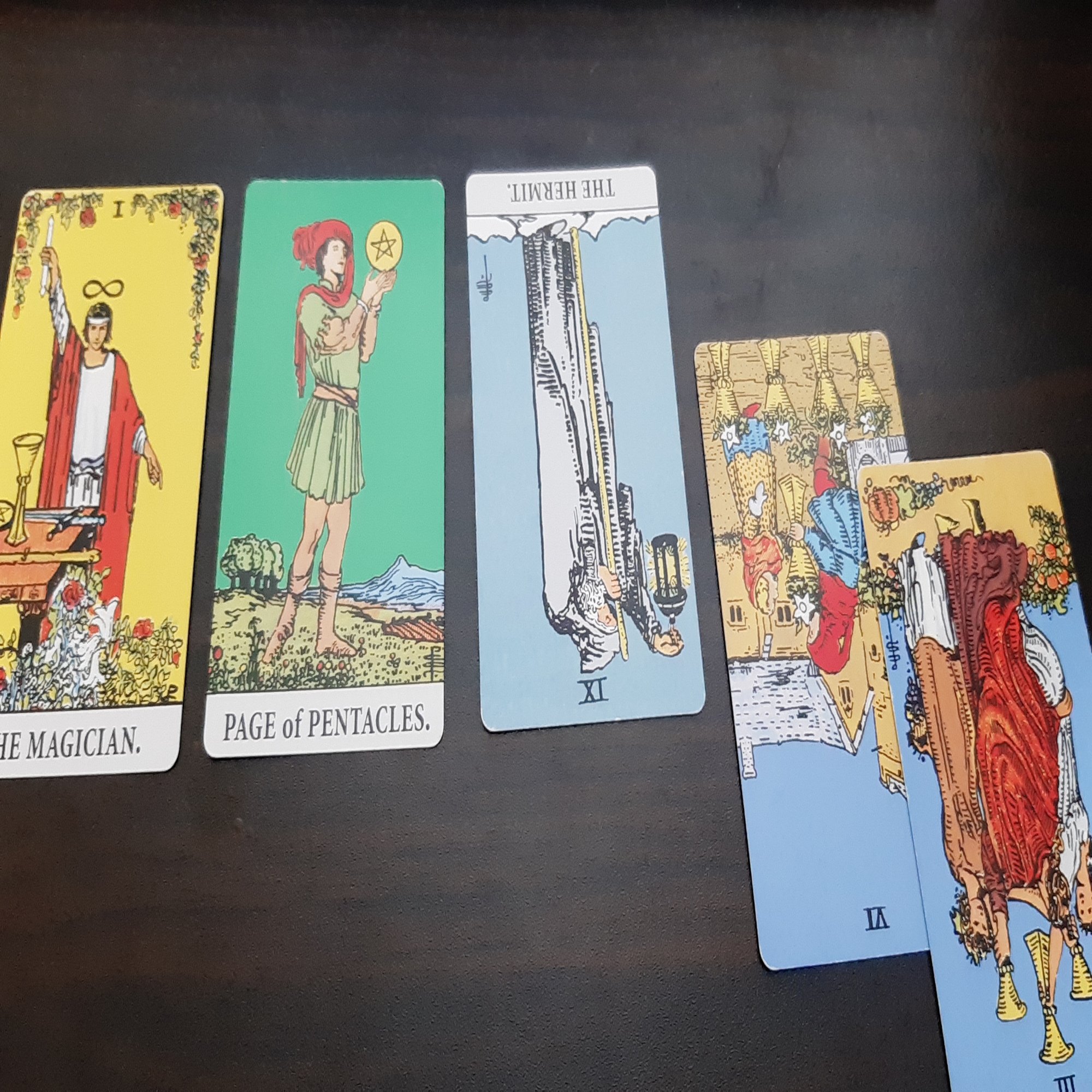 マジシャンのカードとPAGEのペンタクル。このカードは堅実で真面目ですが未熟で経験が伴わないカードです。そしてHERMIT(隠者)の逆位置が出ました。視野の狭さ、浮世離れのカードです。ズバリ結果を聞いてみました。