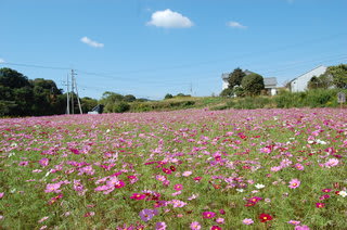 この地区のコスモス畑を見るのが(背景混みで)好きで。