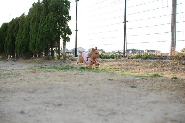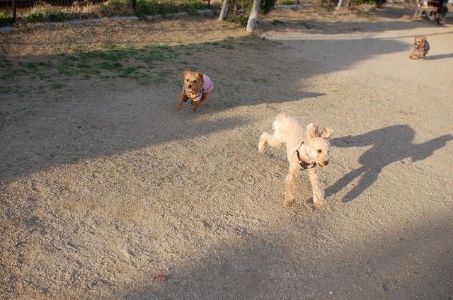 とっても元気なプードルさんがいたので、ちゃいは釣られて一緒に走ってました~