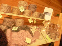 おなじみleafさんのオリジナル糸。その糸で編んだネックウォーマーやふんわりマーガレット。