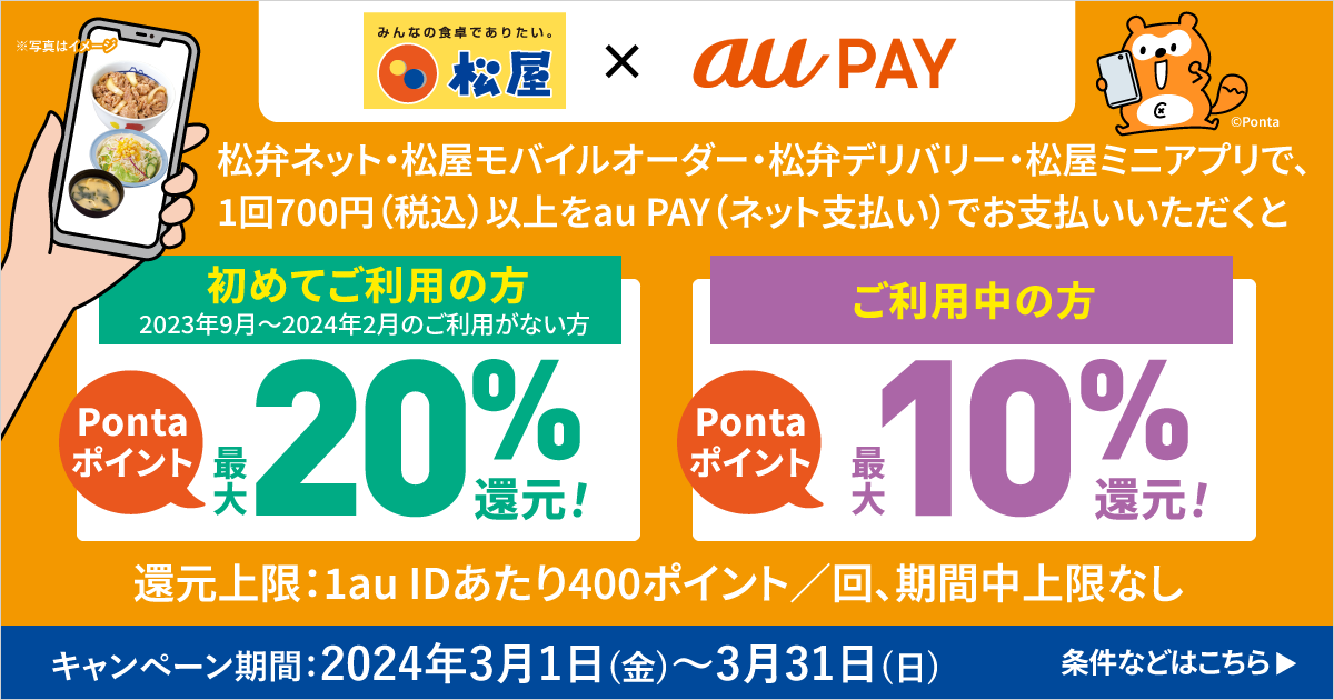 d払い×松屋 20%還元!(モバイルオーダー、テイクアウト)