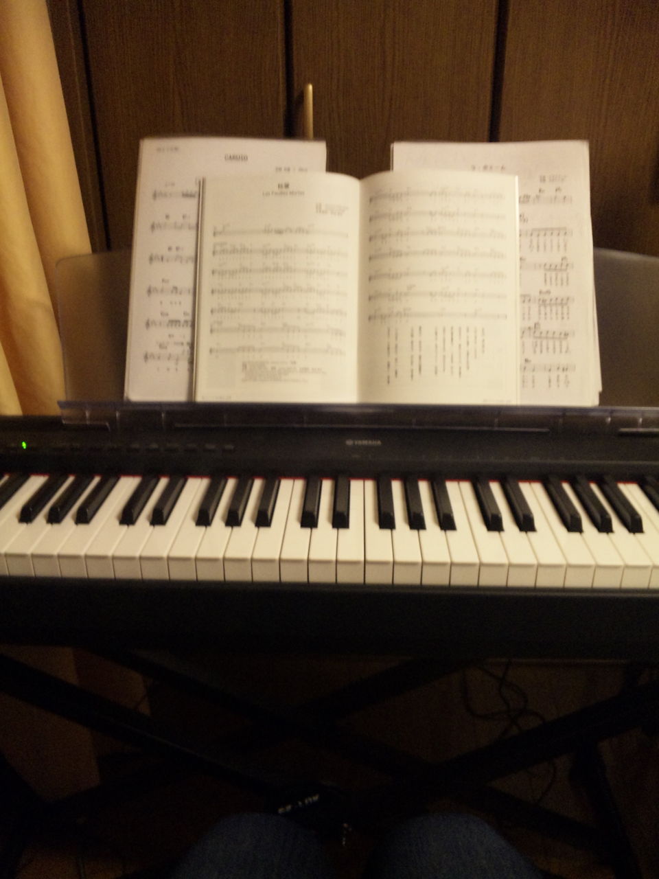 マイクなしで歌うのがいいと言っておきながら、電子ピアノなのが残念ですが、本物のピアノはどうしてもおけないので、自宅はあくまで仮の練習場ですね。