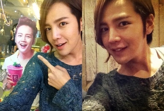 ポーズをとっている。チャン・グンソクは、自身の写真を指さしながら微笑み、