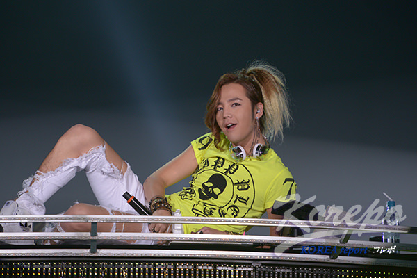 円形ステージのDJブースが上がりそこにグンソクは寝そべった姿で登場、